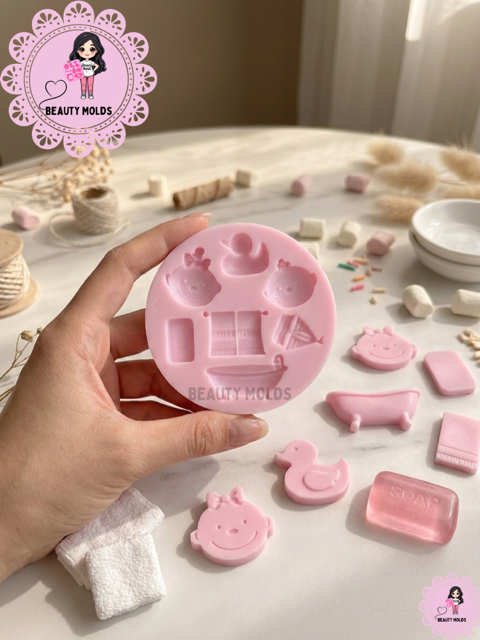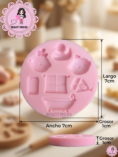 Las dimensiones que se muestran en la foto se refieren a medidas del molde de silicona; es importante considerar que el material utilizado para elavorar los apliques pueden tener variaciones de contracción.
